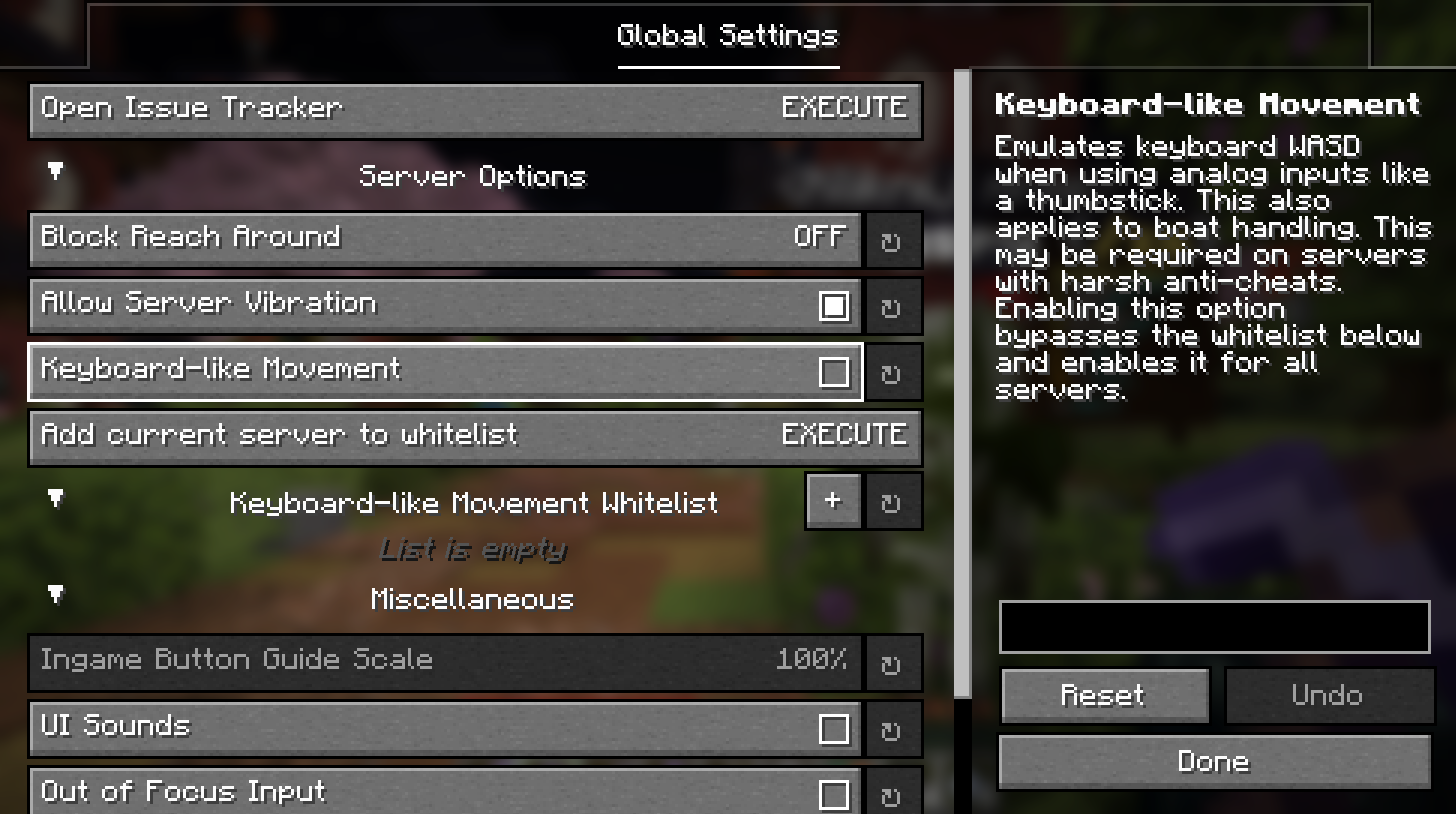 - Włączasz "Keyboard-like movement" lub dodajesz serwer do whitelisty przyciskiem niżej.